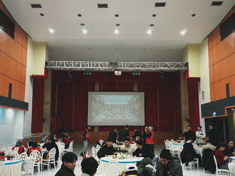 Gümüşhane’de ramazan ayının manevi iklimi, Türk Kızılay Gümüşhane Şubesi tarafından düzenlenen anlamlı bir organizasyonla taçlandı. Kızılay Kadın ve Gençlik Kolları’nın ev sahipliğinde Atatürk Kültür Merkezi (AKM) Salonunda gerçekleştirilen "Anne Eli" temalı iftar programına, Üniversitemiz bünyesinde eğitim gören uluslararası öğrencilerimiz yoğun katılım gösterdi.